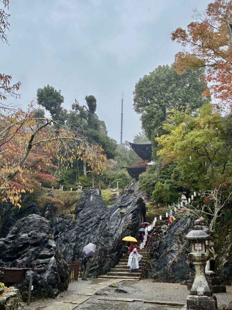 降ってくる雨の瞬間と少し紅葉、そして仲間たち。多宝塔の偉大さが伝わってきます。