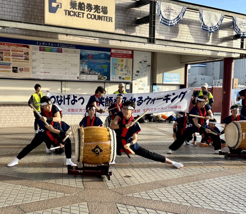 神奈川ウォーキングクラブ 吉越悦子 「和太鼓で 全国の仲間を迎える 大津港」